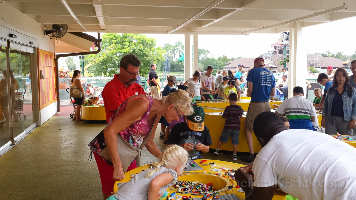 While under a canopy, there are a ton of of play stations to build at with bricks. However, this visit was the first time I noticed the dual race tracks in the center.