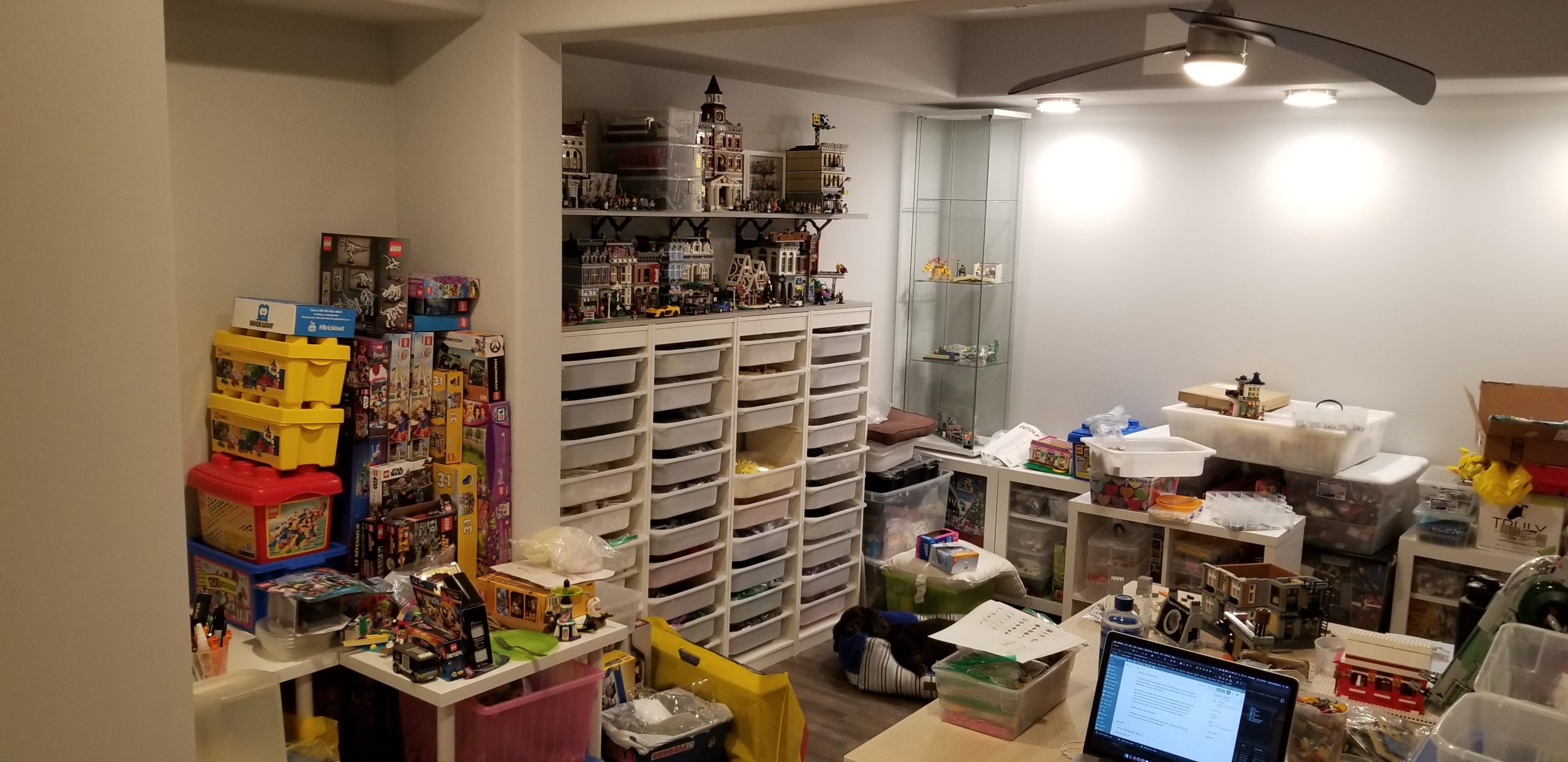 Still a hot mess! But it is a more usable space. All the sorting I've done lately filled up our Trofast bins, but we're closer to having fully sorted all the loose brick we have everywhere.