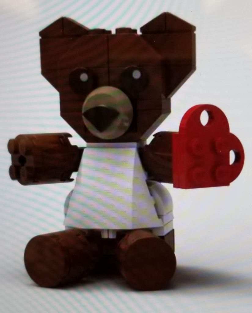 Holding an iconic red heart, the LEGO Valentine's Brown Bear 40462 comes on a picnic blanket decorated with buildable, red, heart-shaped balloons and colorful flowers. He also has posable arms and ears.