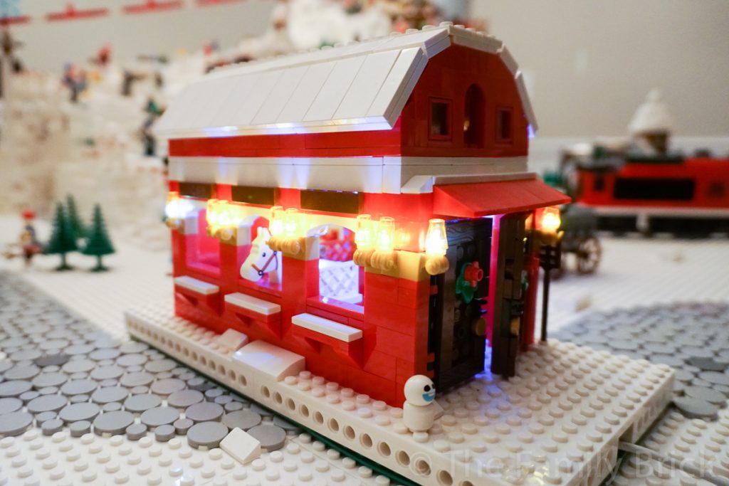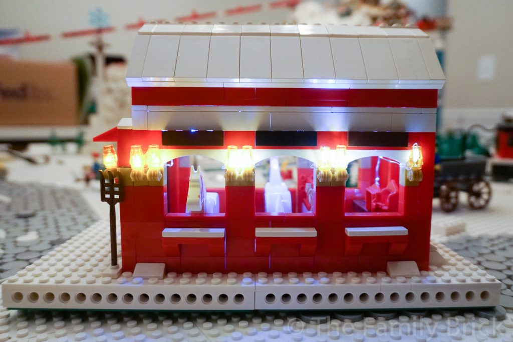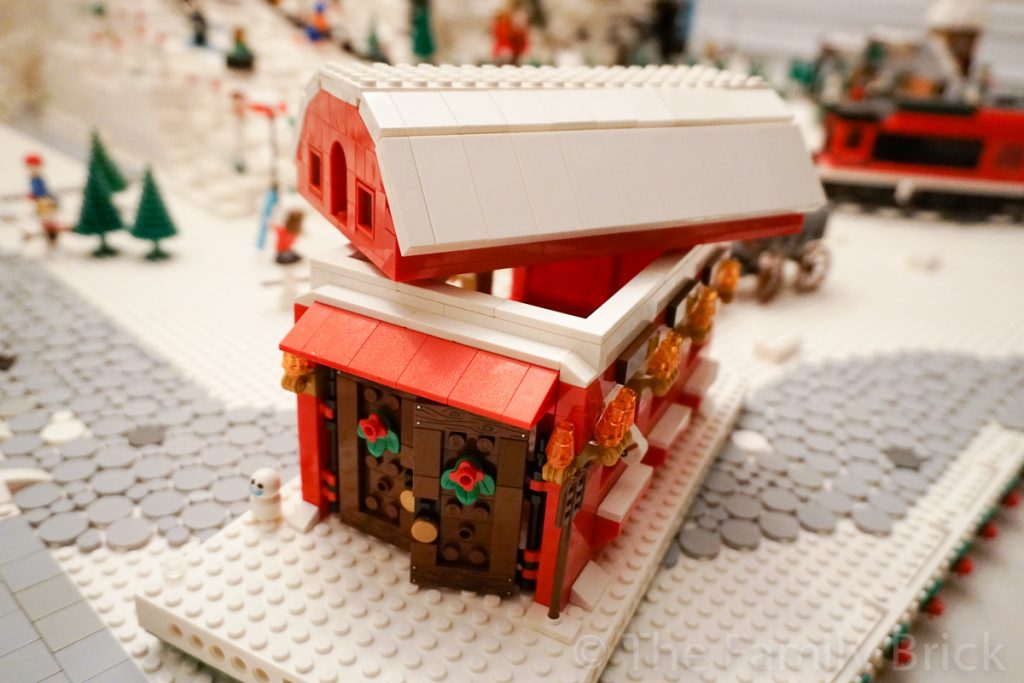 There's also the fact that once we built the initial concept, Mr. Family Brick quickly realized it out-scaled our existing buildings. We had to remove 2 of the stalls and reduce the height of the build to match our winter village sets.