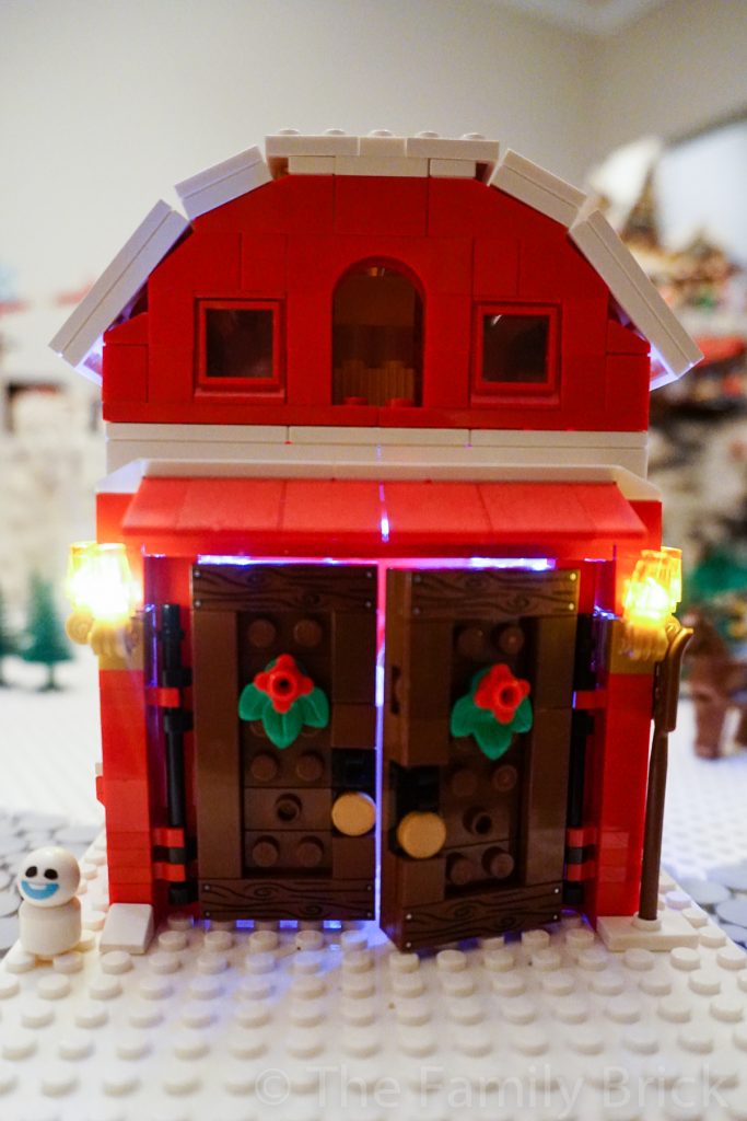 As I already mentioned, Mr. Family Brick was the one who mainly brought this idea to life. He had a vision for a traditional red barn, with reindeer stalls, nameplates and lights.