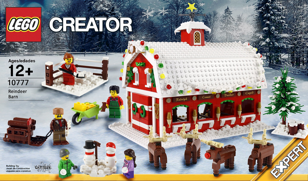 When I think about farms at Christmas, I always imagine a red barn covered in snow. It strikes me as funny, because growing up in Puerto Rico, our farms were every color under the sun... except for red. And of course, we didn't have snow. Yet, Mr. Family Brick and I have always imagined adding a red LEGO Christmas Reindeer Barn to our build.
