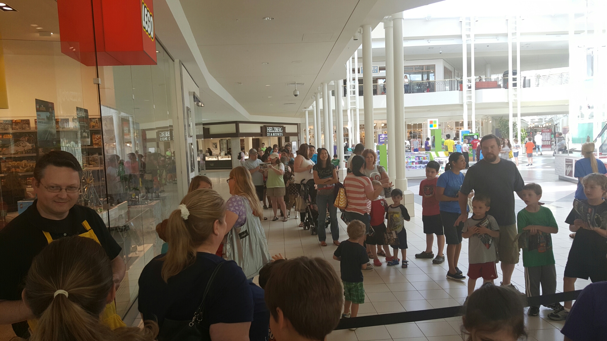 I hope everyone in line got a ticket, cause it stinks to wait for so long and not get one. After picking up our tickets, grabbing a bite to eat and playing at the indoor mall playground, back we came to build our parrot.
