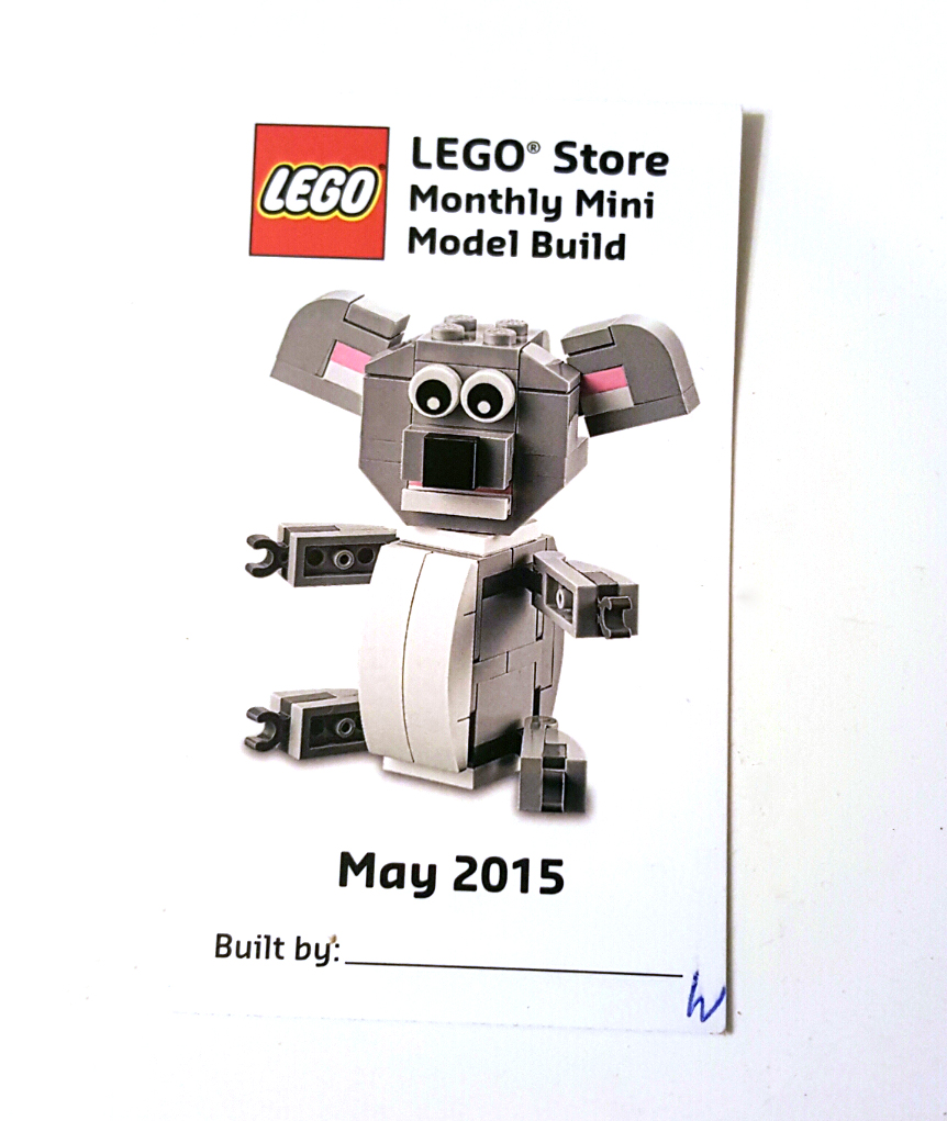 And here is the build card with the parts list. Brickset and Rebrickable haven't posted a list of parts with numbers yet, so I don't have that for you. However, you can download the instructions for the May 2015 LEGO Mini Build Koala here. There was one more interesting thing that occurred yesterday. While standing in line, we got notices of a new system for registering for the LEGO Monthly Mini Builds:
