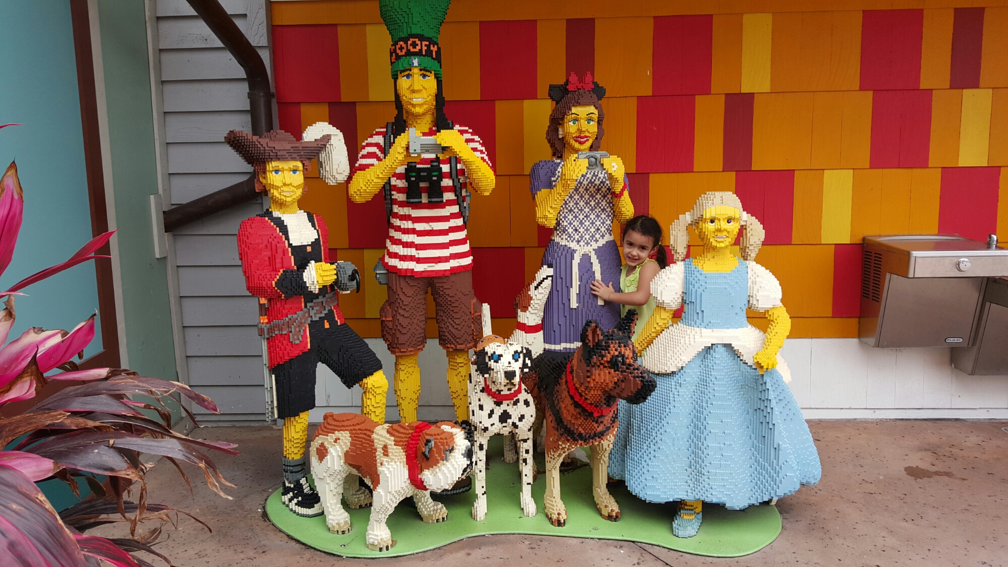 After we left the store (empty handed, aside from the Koala), we walked through World of Disney and headed back home past the LEGO store. Of course, we took our standard photo with the LEGO family.