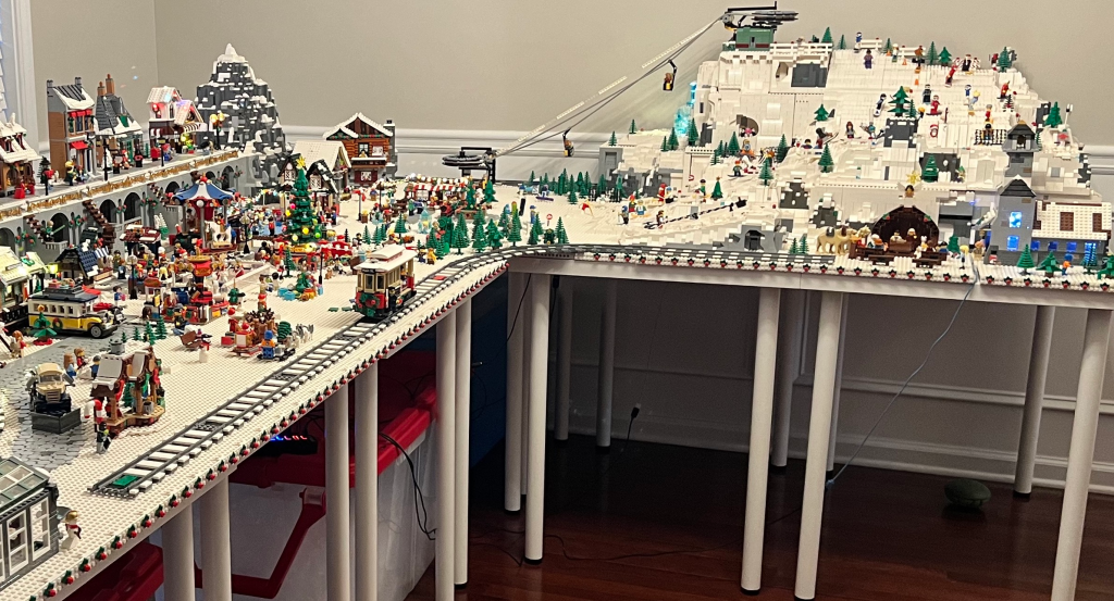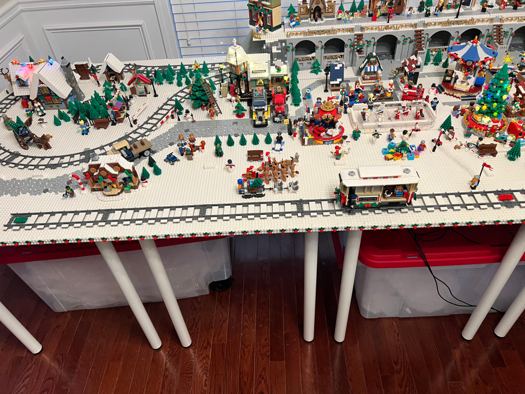 For our build, I was planning on having the trolley take our visitors from the entrance of the winter village over to our nativity scene and church; however, I quickly found out that the color sensor does not like flex track... or didn't like that our flex track was unsupported by the table. (We did have a base plate that extended out to provide that additional support though.)